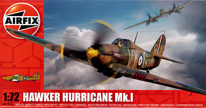 Jeder hatte eine späte MK. I erwartet, aber schon beim genauen hinsehen auf den Deckelbild oder beim Bemalungsschema erkennt man eine Hurricane mit Holztragflächen und genau diese ist auch im Karton.