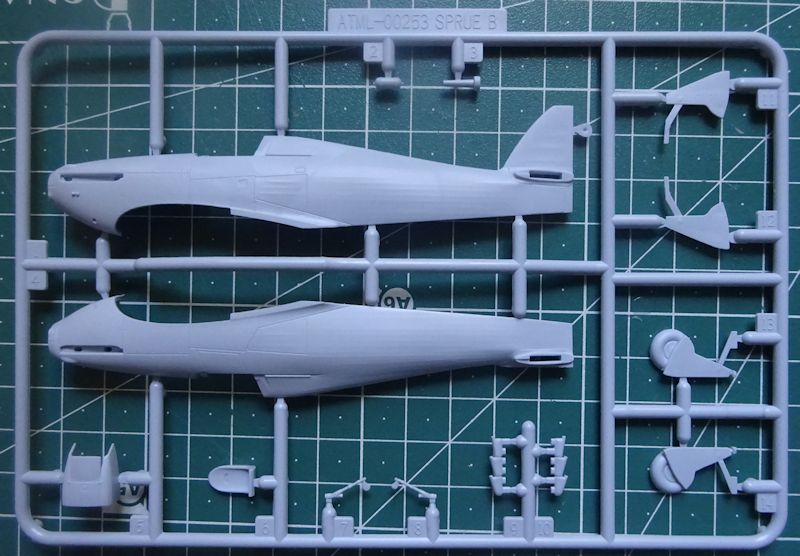 Ast E enthält die Teile für die erste Produktionsausführung, Ast D für die letzte der Mk.I. Airfix bietet hier eine Ausführung die Teile beider Varianten vereint, d.h. man muss etwas mehr beim Bau aufpassen. Die Kanzel ist zweiteilig und klar abgespritzt.