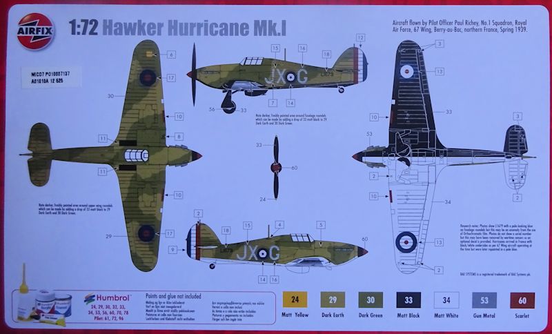 Fazit: Es scheint bei Airfix Mode zu werden Nachauflagen nur noch mit einer Decomöglichkeit herauszubringen. Trotzdem ist dies die beste Hawker Hurricane mit stoffbespannten Tragflächen. Sie ist auch Anfängern zu empfehlen.