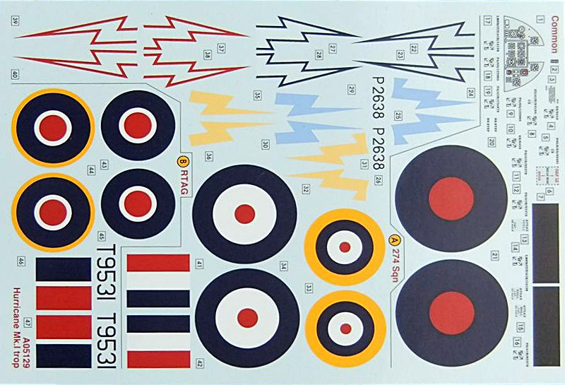 Bemalung: Interessant ist der besondere Tarnanstrich, welcher mit dem an Bug und Flügelvorderkanten versehenen italienischen Farben wohl Verwirrung stiften sollte. Auf dem Farbblatt gibt Airfix dafür eine Grundfarbe von Aluminium unter der italienischen Fleckentarnung an. Weist aber auch darauf hin, dass es Abweichungen gab. Meiner Meinung nach, wäre anstelle des metallischen Anstrichs, die typische Sandfarbe italienischer Jagdflugzeuge historisch genauer.