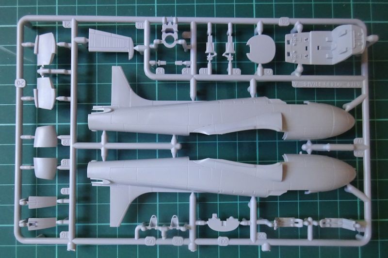 Bausatz: Airfix schickt den bekannten Bausatz hier als T.4 ins Rennen. Der Unterschied zur T.3 besteht nur in den Decals. Im gut gestalteten stabilen Karton befinden sich drei graue und ein Klarsichtast mit insgesamt 45 Teilen, Abziehbilder und die Bauanleitung.