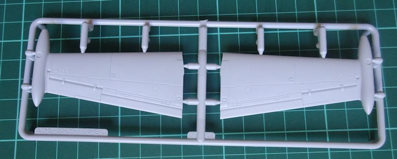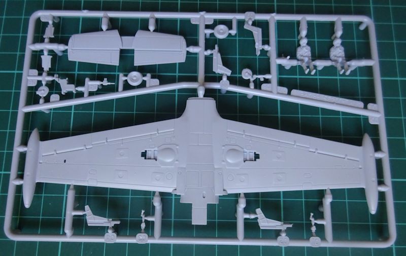 Die Gravuren sind sauber und etwas dezenter als bei den anderen neuen Bausätzen. Das Cockpit ist ausreichend bestückt, da kleinere Details durch die schwarze Innenfarbe verschluckt würden. Die Pilotenfiguren füllen zwar die Sitze, bieten aber durch ihre Haltung wenig Dynamik. Die unteren Tragflächen gibt es als ein Teil, welches gleich den richtigen Winkel der Tragfläche vorgibt und damit auch die Montage erleichtert.