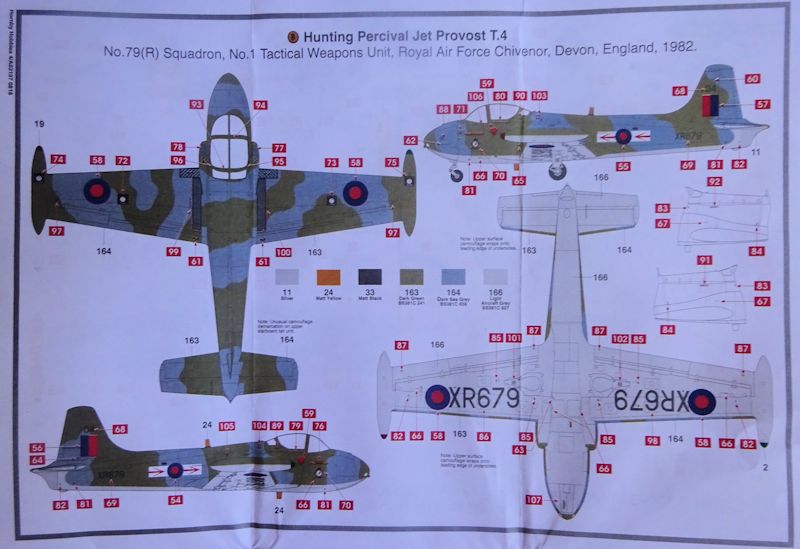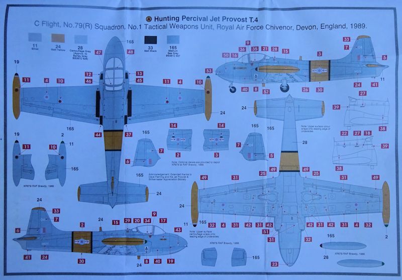 Bemalung: Sauber gedruckte Abziehbilder für zwei Maschinen der RAF Tactical Weapos Unit in den 1980er Jahren bietet Airfix, Farbangaben erfolgen in Humbrol.