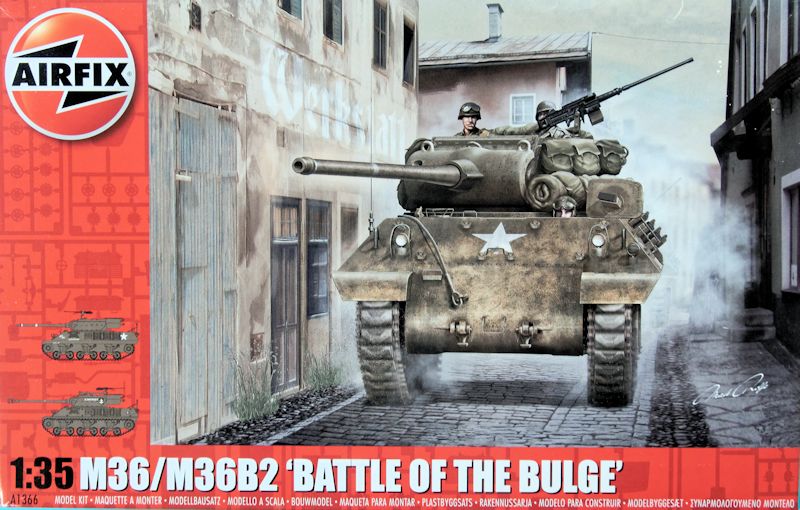 Vorbild: Der M 36 Panzer tauchte erstmalig 1944 auf dem Europäischen Kriegsschauplatz auf, um gegen die Deutschen Panther- und Tigerpanzer bestehen zu können. Hierfür wurde die 76 mm Kanone des M 10, der die Basis für dieses Fahrzeug bildete, auf 90 mm Kaliber erhöht. Um diese Kanone und die dazugehörige Munition aufnehmen zu können, musste der Turm verändert werden. Der Unterschied zwischen M 36 und der B2 Version lag darin, dass Letztere einen Dieselmotor besaß. Hierfür wurden zwei 6-Zylinder GM Motoren zu einem 12 Zylinder Dieselmotor zusammengefügt. Der M 36 besaß dagegen einen Chrysler 8-Zylinder Benzinmotor mit 500 PS. Dieser Panzerzerstörer war bei den Besatzungen sehr beliebt und wurde meist auch umgangssprachlich als TD (Tank Destroyer) bezeichnet. Bei der US-Armee waren diese Panzerzerstörer meist mit oben offenen Türmen versehen, um Gewicht einzusparen und auch eine bessere Rundumsicht der Besatzung zu ermöglichen. Das Gesamtgewicht dieses Panzers lag bei knapp 30 Tonnen. Mit seiner Höchstgeschwindigkeit von rund 50 km/h war er das ideale Fahrzeug für die neue US-Kampftechnik "Shoot and scoot" (Feuern und abhauen). Insgesamt wurden vom M 36 rund 1.700 Stück gefertigt.