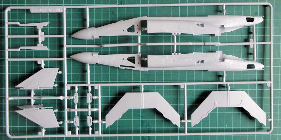 Bausatz: Bisher gab es nur die aus den 1980er Jahren stammenden Matchbox und Fujimi Bausätze der britischen Phantom. Jetzt liefert Airfix ein zeitgemäßes Modell des RAF Musters. Im vollgepackten Karton befinden sich sechs hellgraue und ein Klarsichtast, Abziehbilder und die Bauanleitung. Es gilt 152 Teile zu verbauen. Guss und Detaillierung entsprechen der aktuellen Airfixqualität. Die marinespezifischen Teile wandern in die Restebox.