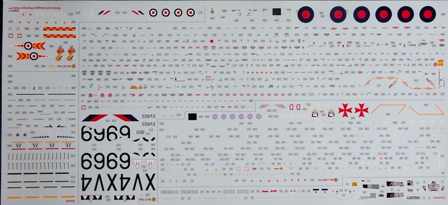 Ein großer Abziehbilderbogen bietet neben einem reichhaltigen Stencilangebot Abzeichen für drei RAF-Phantom.