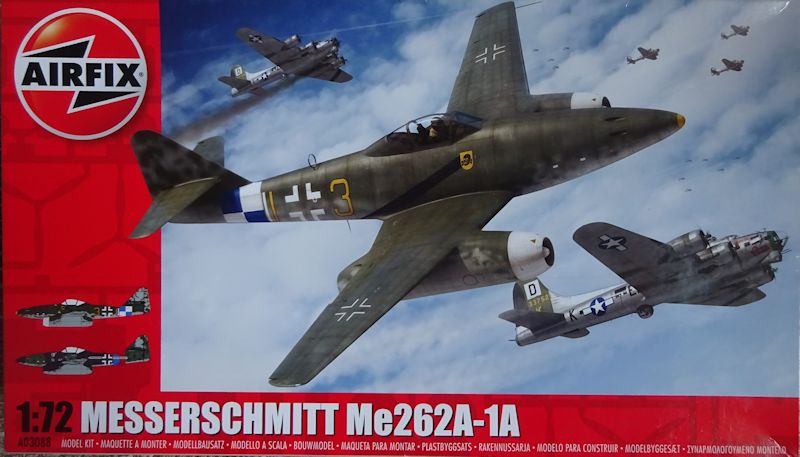 Vorbild: Die Messerschmitt 262war das erste mit Strahltriebwerken ausgerüstete Jagdflugzeug der Welt,das im praktischen Einsatz verwendet wurde. Die Entwurfsarbeiten dafür hatten bereits vor dem Zweiten Weltkrieg begonnen. Erst als sich der Kriegsverlauf aber zunehemend gegen das Deutsche Reich wendete, wurde die technische Entwicklung beschleunigt. Probleme mit den Einwellen-Strahltriebwerken sowie durch Einmischung von einflussreichen Entscheidungsträgern aus Regierungskreisen führten zu weiteren Verzögerungen. Als die Maschine schließlich im April 1944 in Dienst gestellt wurde, bedeudete das im Vergleich zu den damals verwendeten kolbenmotorbetriebenen Jägern einen Riesensprung nach vorn. Ihre technisch überlegene Aerodynamik in Verbindung mit überaus schubkräftigen Doppelstarhltriebwerkenverlieh der Me 262 damals sonst unerreichte Leistungen bei geraden Flügen. Mit ihrer Beschleunigung übertrumpfte sie alles, was die Alliierten aufbieten konnten, und ihre vier 30mm Maschinenkanonen sorgten für verheerende Wirkung. Von ihrer hohen Geschwindigkeit abgeshen, war die Me 262 aber in anderer Weise verwundbar. Ihre Reichweite war kurz, und sie konnte von geschickten Piloten der Alliierten bei ihren gerade verlaufenden Starts und langen Landeanflügen oft abgeschossen werden. Auch als Jagdbomber und mit Radar als doppelsitziger Nachtjäger eingesetzt, konnte die Me 262 bis Kriegsende 542 Abschüsse verbuchen. Das machte sie zum erfolgreichsten Düsenjäger des Zweiten Weltkriegs und einem bleibenden Symbol in der Geschichte des Luftkampfes. (nach Airfix)
