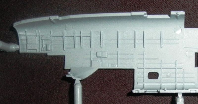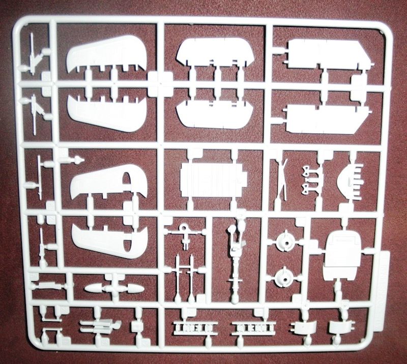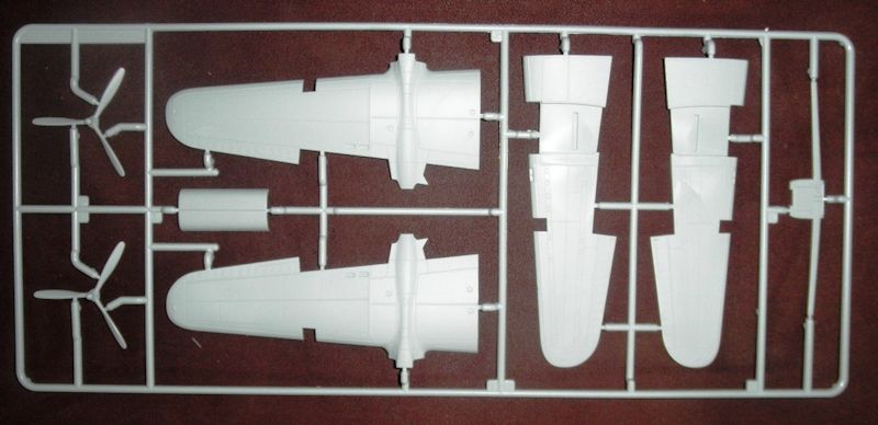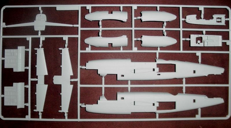 Spritzrahmen 1 enthält die beiden Rumpfhälften, den Rumpfholm, den Cockpitboden, die Motorgondeln und Teile des Höhenleitwerks. Der gesamte Rumpf ist innen graviert und hierbei sehr ausführlich im Bereich des Cockpits.