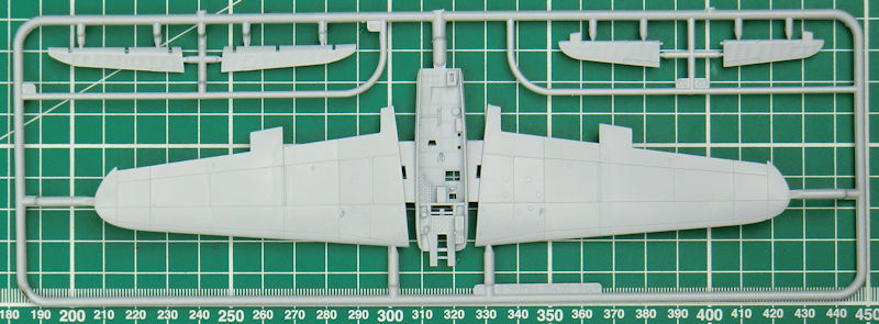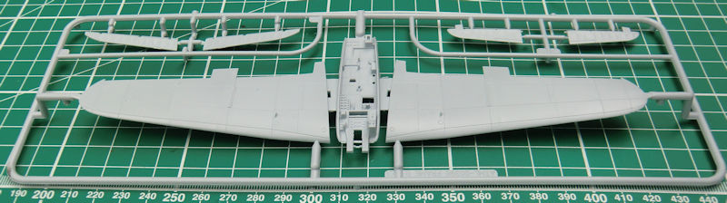 Bei den Steuerflächen hat Airfix auch an die scharfen Hinterkanten gedacht und so gibt es diese jeweils immer einteilig. Die Landeklappen kann man in Neutralstellung oder ausgefahren montieren. Dafür gibt es zwei verschiedene Bauteile. Die Stoffstruktur ist vielleicht eine Spur zu deutlich.