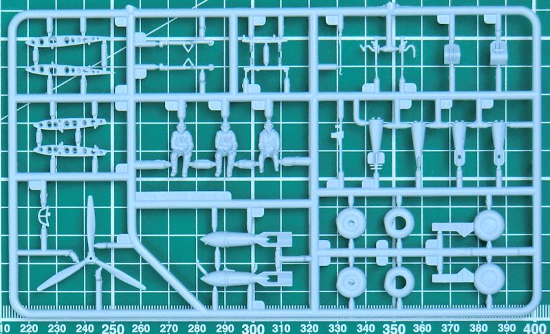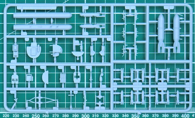 Der Motor entsteht aus drei Teilen. Da es einen separaten Spritzling für die Motorsektion gibt, ist schon klar, dass es 2016 eine B5N1 geben wird. Die Kühlluftklappen an der Motorhauben können offen oder geschlossen sein. Dafür liefert Airfix ein Alternativteil. Die Hauptfahrwerksräder sind leicht abgeflacht. Das Fahrwerk und die Schächte sehen aus dem Kasten heraus sehr gut aus. Bei den Abwurfwaffen hat Airfix geklotzt. Hier gibt es diverse Optionen. Die Klarsichtteile sehen sehr gut aus. Daher kann auch die Kanzel alternativ offen oder geschlossen bleiben. Für die erstere Position hat man die Teile zusammengefasst. Damit muss man die offenen Teile nicht über die festen würgen…