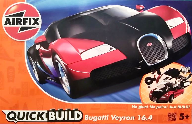 Airfix hat für Bastler ab fünf Jahre eine Reihe von Kits zum Zusammenstecken herausgebracht. Über die Erstausgabe berichtete Dani bereits im September 2015. Neu beim Modell des Bugatti Veyron, dem Supersportwagen aus der italienischen Schmiede mit 8 Litern und 1000 PS unter der Haube, ist die schicke rot-schwarze Lackierung.