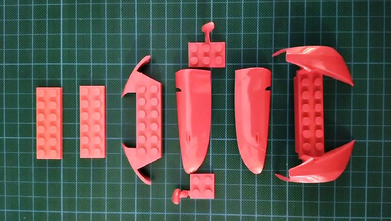 Die Fixierung der Teile erfolgt durch Lego-ähnliche Zapfen. Alle Teile wirken stabil, das schwarze und rote Material ist außerdem sehr sauber gegossen und hochglänzend, so dass alles beim Auspacken einen sehr wertigen Eindruck hinterlässt.