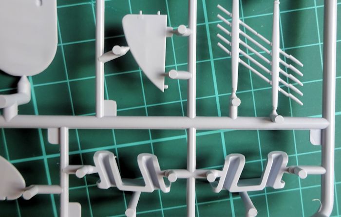 Die 43 Spritzgussteile sind sauber und gratfrei abgespritzt. Sie habe die Gravuren der neuen Airfixlinie und zahlreiche Bauteile sind filigran ausgeführt. Damit entsprechen sie den Anforderungen an SKILL-Level 2.
