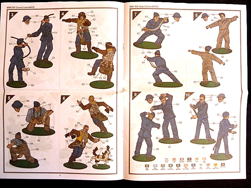 Die Figuren teilen sich in zwei Piloten und acht Figuren des Bodenpersonals auf. Letztere lassen sich wahlweise mit Stahlhelm oder Stoffmütze auf dem Kopf zusammenbauen. Eine nette Idee, da die Stahlhelme eher zu den frühen Auseinandersetzungen passen.