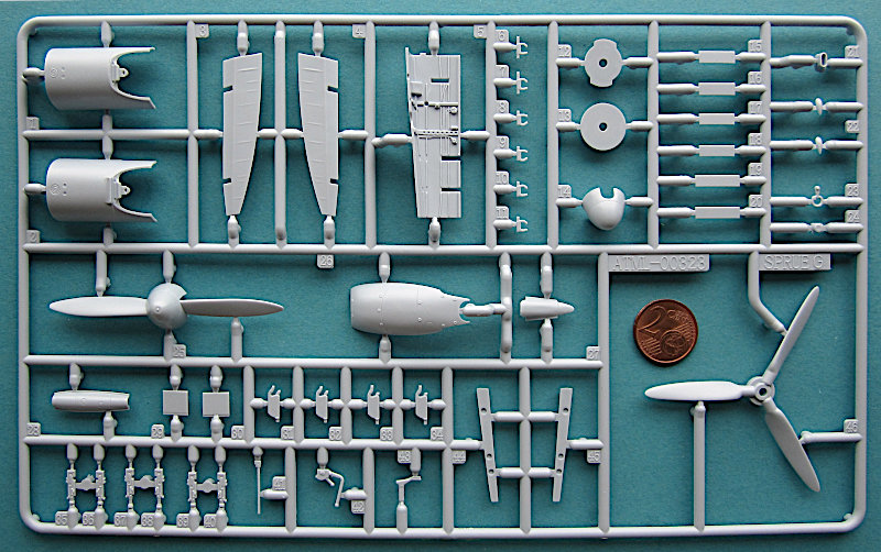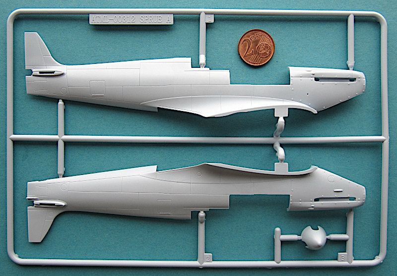 Das Cockpit selbst ist ausgezeichnet detailliert, aber es mangelt ein wenig an der Finesse der Tamiyakits. Trotzdem. Mit ein paar Gurten und vielleicht einem Zoomsatz von Eduard erreicht man hier Vieles. Der Bausatz enthält 3 verschiedene Kanzeltypen, mit und ohne Panzerglasscheibe und auch der Bereich vor dem Cockpit kann mit und ohne Panzerung gebaut werden. Auch die 3 Propellertypen sind im Bausatz vorhanden. Die Bauanleitung ist aussagekräftig und wie bei allen neueren Bausätzen von Airfix sehr klar gestaltet. Die Waffenschächte könnten offen dargestellt werden, dazu sind Ausschnitte in die Flügel zu sägen. Ich würde jedoch davon abraten, da die Detaillierung innen nicht gut genug ist. Auch eine optionale Darstellung im Flug ist vorgesehen. Dafür können separat zu erwerbende Ständer von Airfix genutzt werden. Die Steuerflächen liegen separat bei und können ausgelenkt dargestellt werden.
