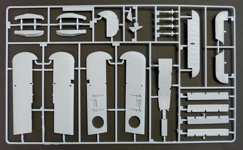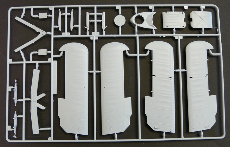 Die Bauteile weisen eine sehr gelungene Darstellung der Stoffbespannung auf. Dies gilt im übrigen auch für die separaten Steuerflächen und die Leitwerksteile. Der Übergang von blechbeplankten zu stoffbespannten Bereichen ist auf den ersten Blick vielleicht etwas zu heftig, aber ich bin mir sicher, dass dies "unter Lack" sicher deutlich weniger auffallen wird, als das jetzt am Spritzling der Fall ist.