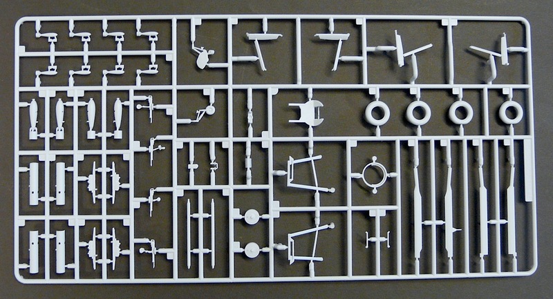 Das Fahrwerk kann ebenfalls alternativ angeordnet werden. Auch hier weisen entsprechende Symbole die Schritte, die zum aus- oder eingefahrenen Fahrwerk führen, deutlich aus Dennoch sollte man evtl. auch hier auskreuzen, was man nicht auszuführen hat, wenn man sich auf die eine oder andere Version festgelegt hat. Die Reifen sind nicht hälftig geteilt, sondern als Vollreifen und getrennt von den Rädern gefertigt. Für die ausgefahrene Fahrwerksanordnung hat Airfix sogar an gewichtsbelastete Reifen gedacht. Topp! Beim Heckrad hat man auch schon wieder die Wahl. Airfix hält hier sowohl die frühe, verkleidete Version als auch die späte, unverkleidete Version mit dem deutlich größeren Reifen vor.