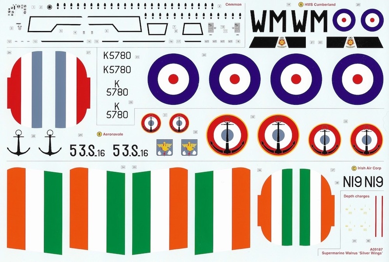 Die Abziehbilder lassen die Darstellung von drei Maschinen zu. Da die ungetarnten, britischen Vorkriegsmaschinen alle eher unspektakulär aussahen hat Airfix zwei "Ausländer" mit auf den Bogen genommen, die etwas mehr Farbe ins Spiel bringen, aber keine Vorkriegsmaschinen darstellen.