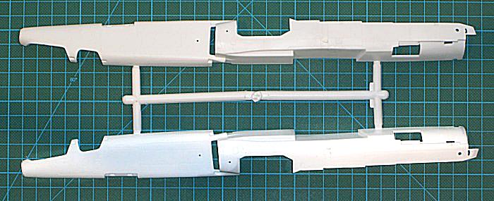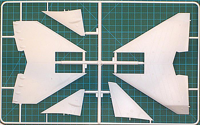 Im Original sind die Lufteinläufe verstellbar und im Bausatz bestehen sie aus jeweils drei Teilen. Die Fahrwerksschächte sind detailliert, bieten jedoch noch genug Freiräume für weitere Verfeinerungen. Selbst die Luftbremsen können geöffnet gebaut werden. Höhen- und Seitenruder bieten die Möglichkeit angestellt montiert zu werden. Bei den Triebwerksauslässen ist eine Grunddetaillierung vorhanden. Bevor die Rumpfspitze angeklebt wird, sollte geprüft werden, ob ein Buggewicht montiert werden muss.