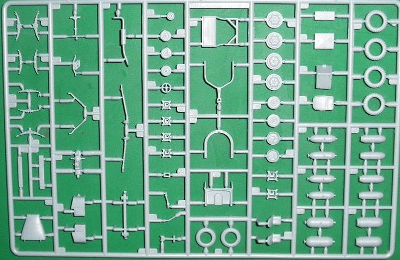 Bausatz: Ein optisch sehr ansprechender Karton, dessen Cover, eine Boeing B-17G zeigt die betankt und mit Bomben versehen wird. Öffnet man den stabilen Karton, so fällt sofort die heftartige, farbige Bauanleitung auf. Die Spritzrahmen sind separat nach hellgrauen und Klarsichtspritzrahmen verpackt. Spritzrahmen sind die Teile für den Chevrolet M6 Bomben Service LKW.