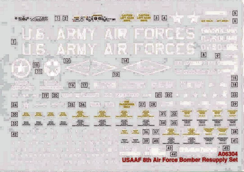 Bemalung: Die Decals sind sauber und versatzfrei auf blauem Papier gedruckt. Sie enthalten alle Markierungen und Hinweise für die Fahrzeuge beim Einsatz bei der USAAF im 2. Weltkrieg.