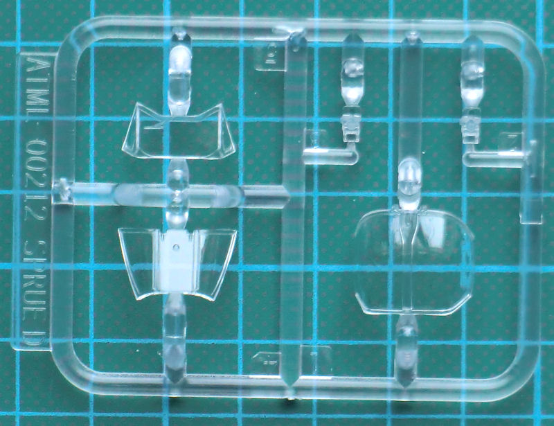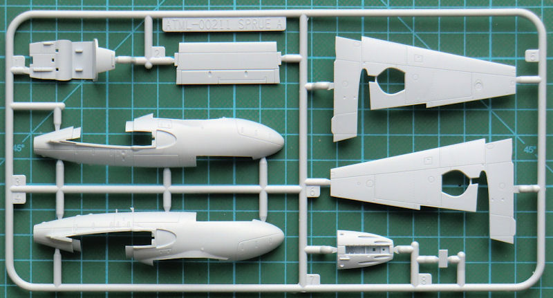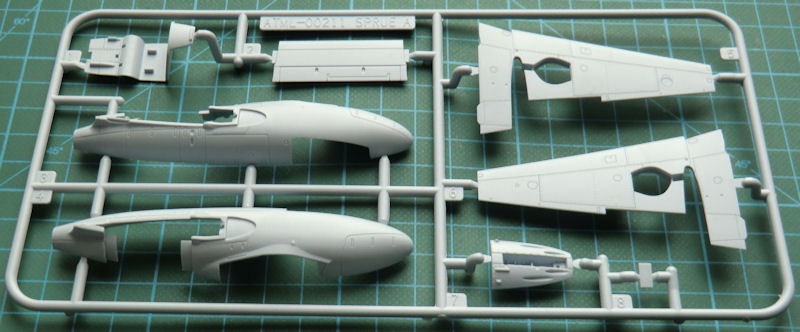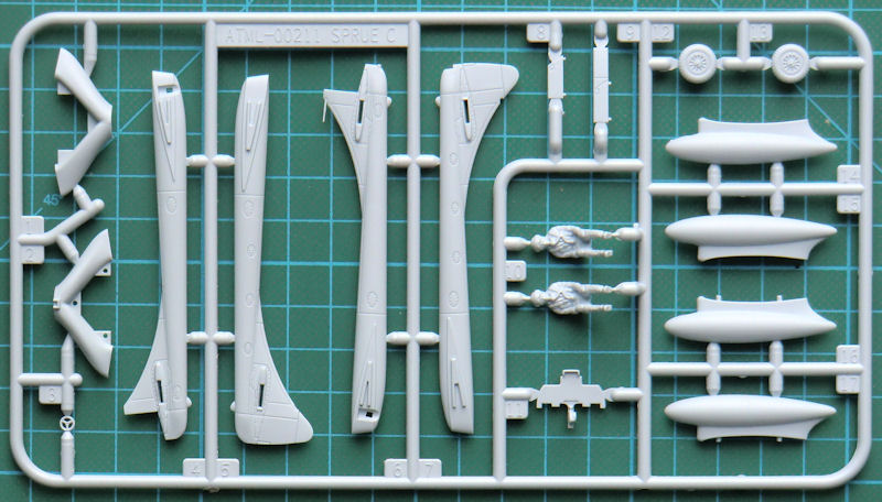 Im Cockpit gibt es zwei recht einfache Schleudersitze mit zwei Pilotenfiguren, zwei Steuerknüppeln, vier Teilen für das Instrumentenbrett und ein Bauteil mit aufmodellierten Details, das hinter den Sitzen befestigt wird. Sieben Gramm sollen als Gegengewicht im Bug verbaut werden. Die Lufteinläufe sind vorbildgerecht bis zum Triebwerk dargestellt und dadurch sehr tief. Gelungen sind auch die äußeren Lufteinläufe an den Tragflächenwurzeln.