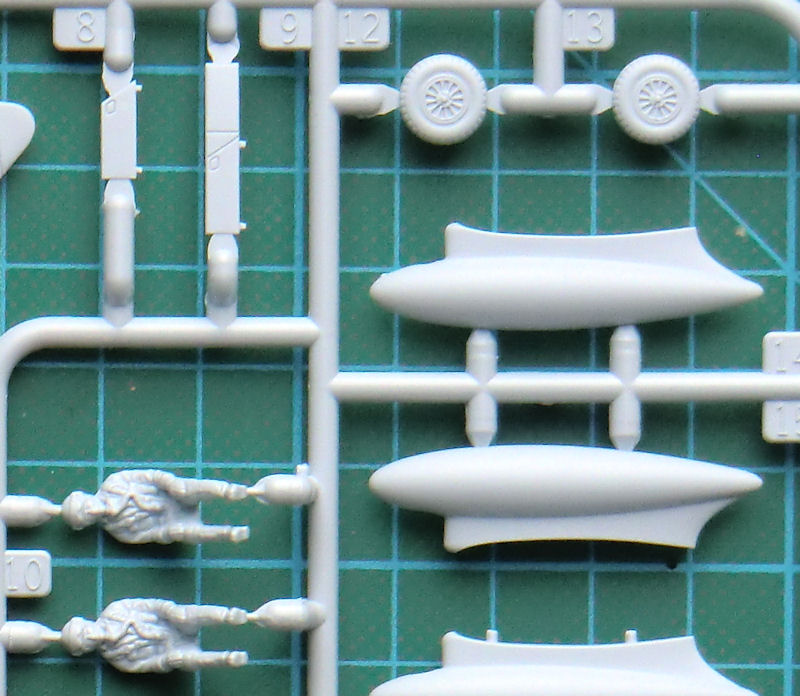 Der praktische attraktive Stülpkarton enthält gut verpackt drei hellgraue Spritzlinge mit 50 Teilen, einen Klarsichtrahmen mit fünf Teilen, den sehr großen Decalbogen und die gut gemachte Bauanleitung. Diese enthält auch wieder zwei mehrfarbige Bemalungsanleitungen. Die Abspritzung der Bauteile ist in Ordnung. Die Gravuren sind etwas strärker, damit sie unter einer Pinselbemalung nicht verschwinden. Auch ist die Oberfläche etwas rauh. Die Konstruktion des Bausatzes ist sehr durchdacht.