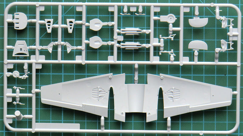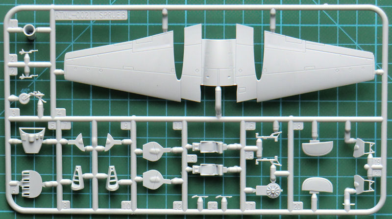 Die obere einteilige Hälfte der Tragfläche wird sehr einfach mit dem Rumpf verbunden. Hier verlässt AIRFIX die klassischen Pfade. Natürlich sind die Ruder sowie Klappen fest nur an die Oberseite modelliert. Dadurch gibt es eine scharfe Hinterkante. Diese gibt es ebenso an den Seiten- und Höhenleitwerken. Das Fahrwerk ist recht ordentlich und es gibt separate Klappen für die geschlossene Option. Die große Klarsichtkanzel kann alternativ offen angeklebt werden.