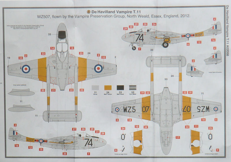 Bausatz: AIRFIX legt im neuem Jahr gleich gut los und bringt für die Freunde der frühen britischen Jets gleich eine Vampire T. 11 aus neuen Formen heraus. Dieser Bausatz entstammt einer Zusammenarbeit mit der Vampire Preservation Group. Diese betreibt noch eine Maschine dieses Musters.