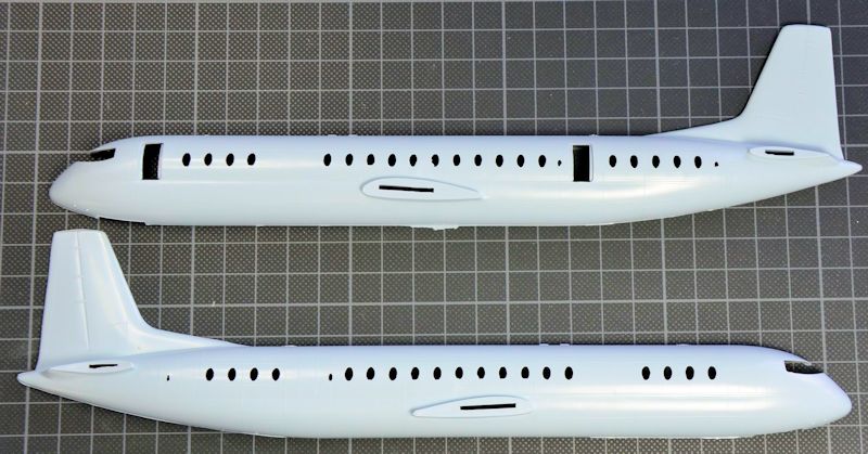 Der Rumpf ist, wie bei Airfix damals üblich, mit offenen Fenstern, offenen Backbordtüren und offenem Cockpit dargestellt. Die Gravuren sind erhaben ausgeführt. Die Fahrwerke kann man ausgefahren oder geschlossen darstellen. Die Teile sind allerdings sehr einfach gehalten.