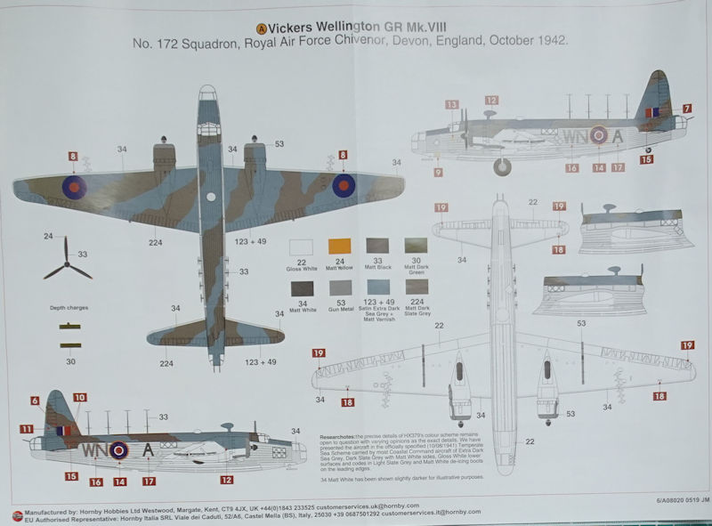 Bausatz: Airfix arbeitet mit dieser Vickers Wellington GR Mk. VIII im Maßstab 1/72 einen Klassiker im Programm ab. Diese Variante war recht einfach aus der Mk. I herzustellen. Letztere war 2018 erschienen.