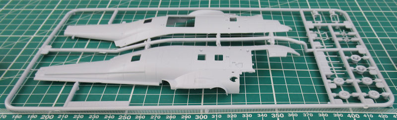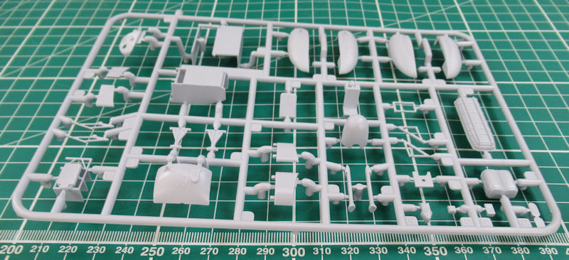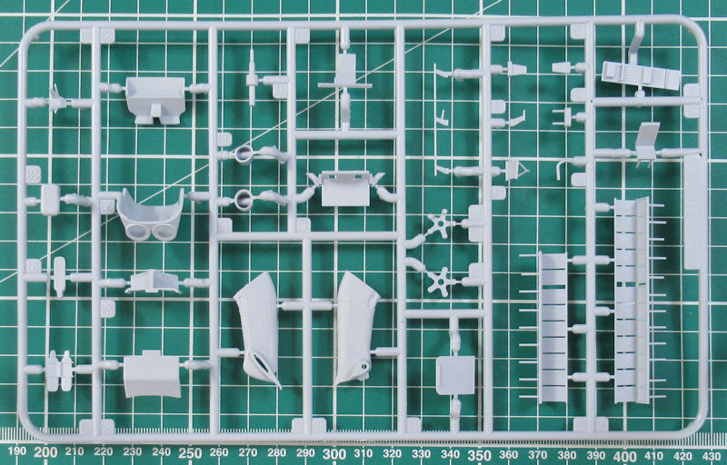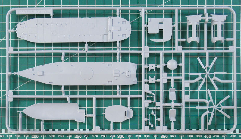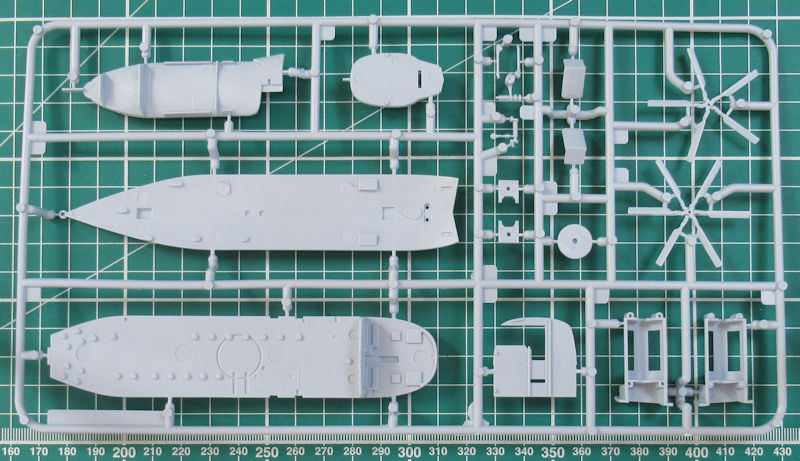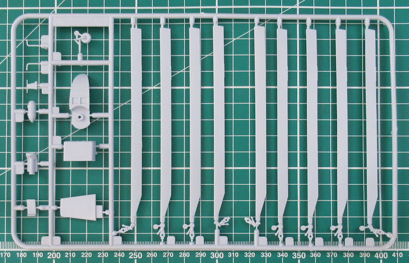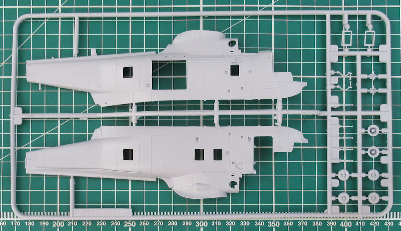 Einen Spritzling hat Airfix für diese Variante neu entwickelt. Darauf befinden sich u.a. auch die typischen Schwimmkörper. Die Abspritzung der Bauteile ist sehr gut. Es gibt feine versenkte Strukturen und auch sinnvolle erhabene Details. Das Heck ist an der Trennstelle geteilt. Das kann später auch angeklappt montiert werden. Gleiches gilt für den Hauptrotor. Dieser kann übrigens mittels separat erhältlichen Elektromotor motorisiert werden. Die Bauanleitung zeigt wie dieses gemacht werden kann.