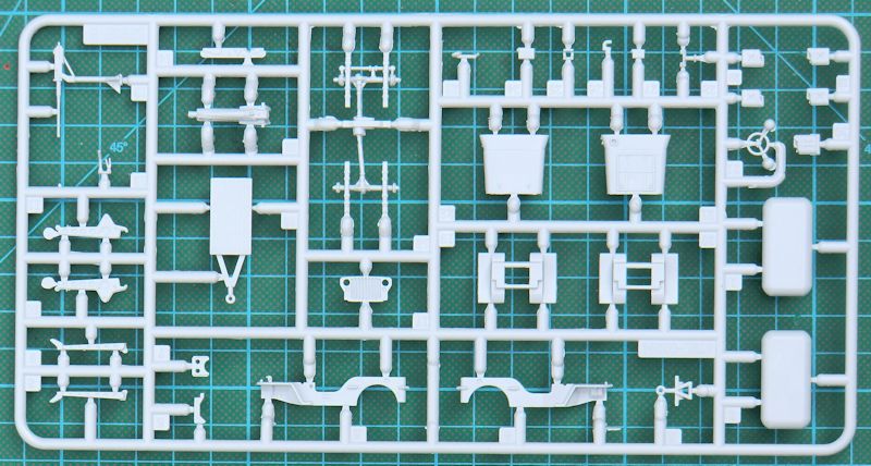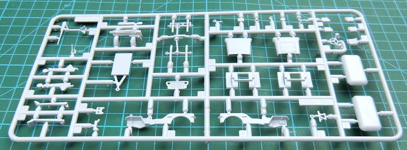 Das Fahrgestell ist sehr detailliert. Airfix hat dafür viele Teile zusammengefasst. Das vereinfacht die Montage. Den Innenraum hat schöne Sitze und natürlich auch Schalthebel sowie Lenkrad. Man kann ein Verdeck montieren oder auch die Frontscheibe abklappen. Natürlich hat Airfix auch an die Schutzplattform für den Fallschirmabwurf des Jeeps gedacht.