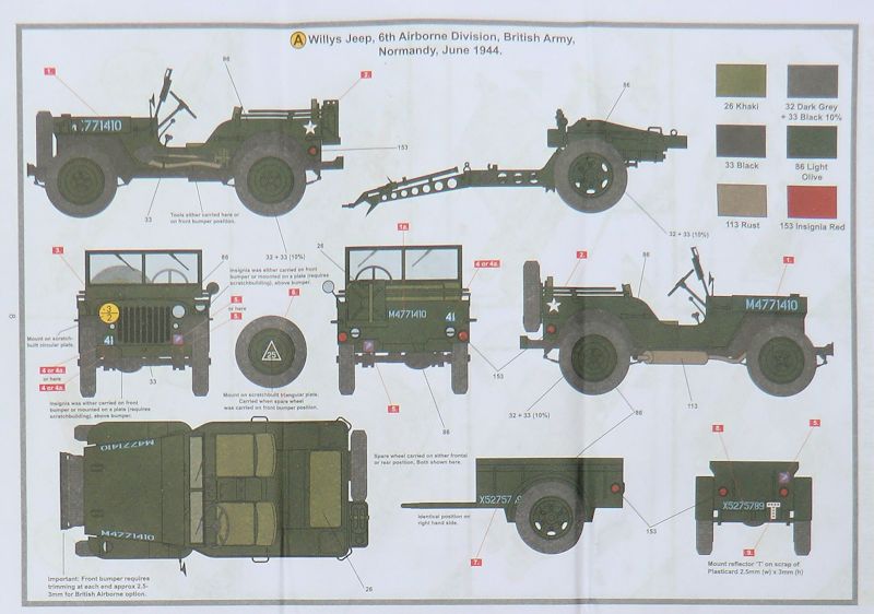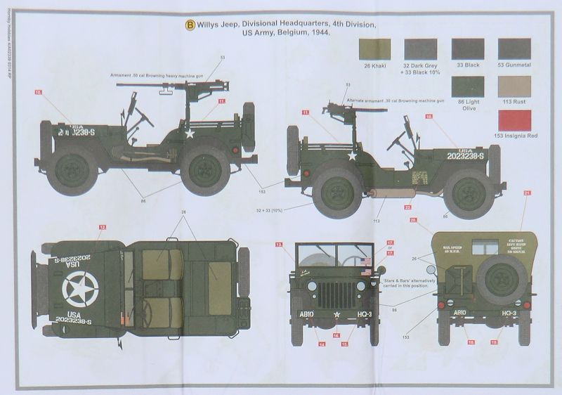 Aus dem Bausatz kann leider nur ein Jeep entstehen. Dafür kann man sich aber bei den Variationen ausleben. So kann ein typisches US Army-Fahrzeug mit Kaliber .50 Browning entstehen. Weiterhin kann ein Jeep der britischen Armee mit 75mm Haubitze oder Lastenanhänger in 1/72 entstehen. Dafür gibt es eine Menge Alternativteile.