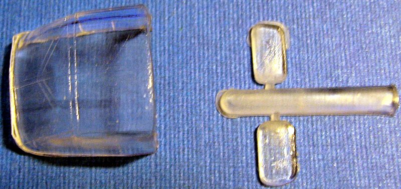 Beim Versäubern der Teile gibt es wenig Aufwand, da Grat glücklicherweise fast nicht vorhanden ist und Auswurfmarken nur innen vorhanden sind. Die Form ist aber im Bereich der Rumpfhälften etwas verschlissen, so dass hier einige Ausblutungen zu finden sind. Einsinkstellen habe ich nicht entdecken können, womit ich eine solide Gussqualität attestieren kann. Sicherlich ist der hier vorliegende Standard nicht mehr “state of the art”, doch wenn man sich vor Augen führt, dass das Vorbild ebenfalls einen niedrigeren Fertigungsstandard aufwies, kann man diesen Bausatz schon als korrekt klassifizieren. Die “Raised-Panel-Bauart” kommt der Holzbauweise sehr nahe, und mit etwas Eigeninitiative kann man noch einige Details ergänzen. So kann man natürlich eine feinere MG-Nachbildung einbauen.