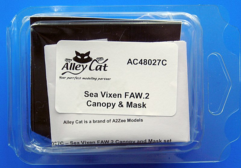 Mittlerweile sind einige Zubehörsätze für den schönen Bausatz der Sea Vixen von Airfix (Review) erschienen. Ziemlich kurz nach erscheinen des Bausatzes hat AlleyCat einen Ersatz für Airfix' Klarteile herausgebracht. Diese sind an sich in Ordnung, haben aber leider den Nachteil, dass man die Rahmen an die Klarteile ankleben muss. Dies birgt ein enormes Risiko, den Bausatz rettungslos zu versauen ... und ich bin Experte für sowas. Also habe ich mir das gute Stück direkt bei A2Zee besorgt, wobei der recht günstige Pfund-Kurs sehr hilfreich war.