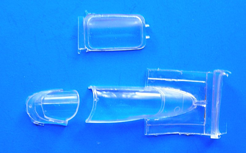 Meine Kanzeln sind leider durch das mehrmalige Umpacken und Transportieren während meines Umzugs an einigen Stellen ein wenig abgerieben - Resin ist in dieser Hinsicht etwas empfindlicher als Plastik. Dies wird durch ein Bad in Klear (aka Future) behoben werden. Auch sollte man nicht vergessen, die Teile in lauwarmem Wasser mit etwas Spülmittel zu reinigen.