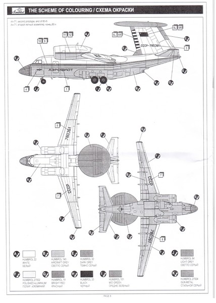 Die Farbangaben beziehen sich auf das System von Humbrol. Die Abziehbilder ermöglichen den Bau des zweiten Prototyps am Ende der 80er Jahre. Die Decals sind nach bisherigen Erfahrungen leider oft die Achillesferse der Bausätze aus dem Raum der ehemaligen Sowjetunion, jetzt so frisch auf dem Bogen machen sie einen guten Eindruck. Kann man nur hoffen, dass das auch nach Jahre auf dem Modell so bleibt. Wie schon gesagt kann die folgende Maschine gebaut werden: