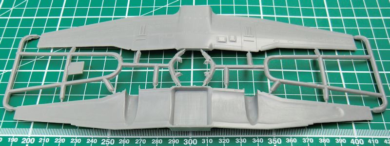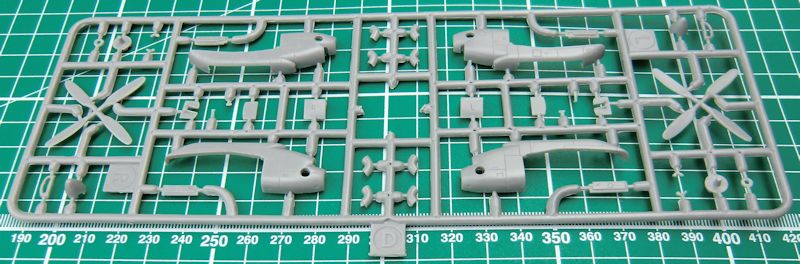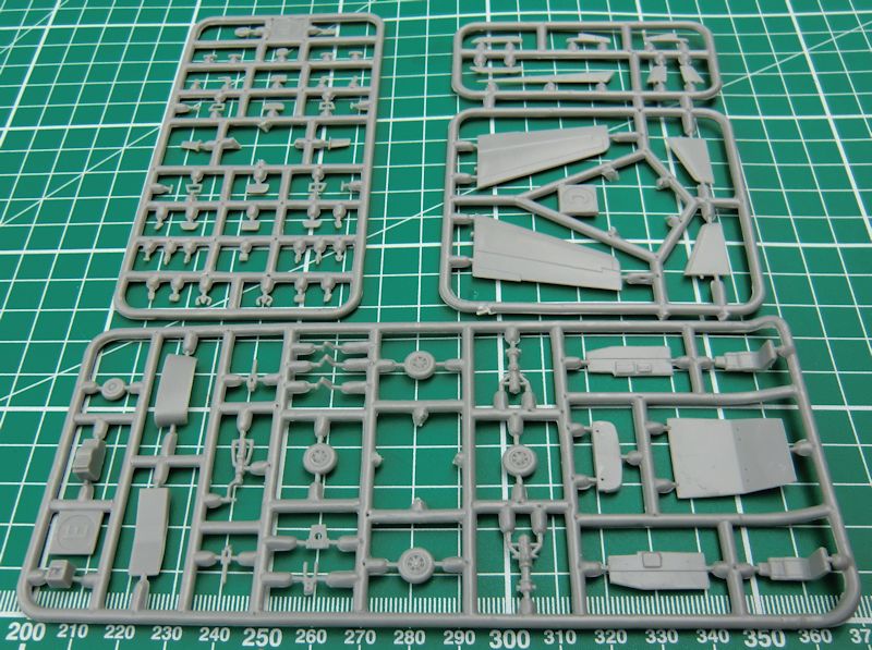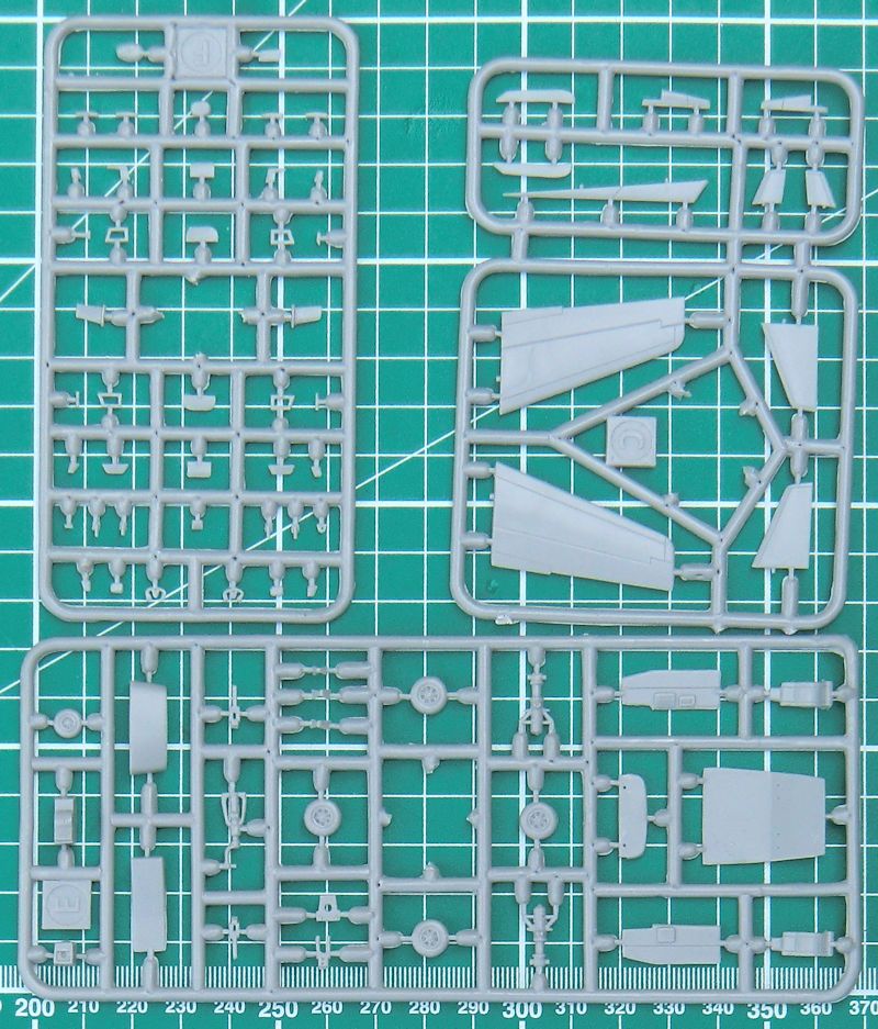 Die Abspritzung des Short-Run-Bausatzes ist sehr gut. Es gibt feine versenkte Strukturen und man hat die Bauteile sinnvoll gestaltet. Im Innern gibt es ein solides Cockpit. Das entsteht aus gut 30 Einzelteilen. Hier kann man noch paar Sitzgurte ergänzen bzw. andeuten. Vor dem Zusammenbau des Rumpfes darf man das Buggewicht von mindestens 5 Gramm nicht vergessen.