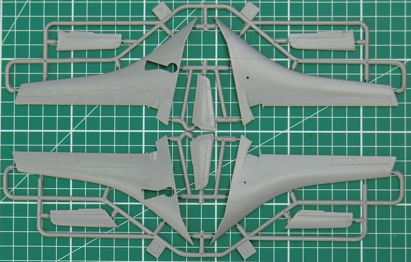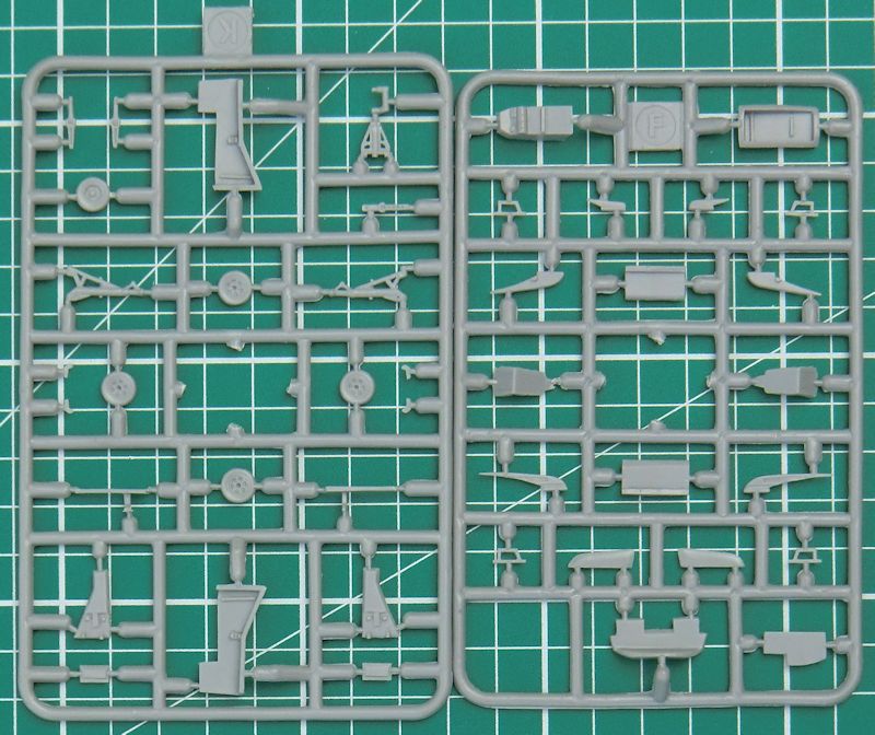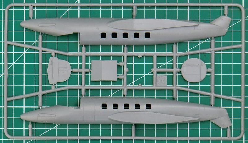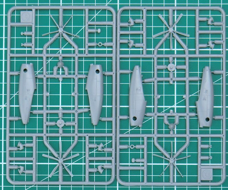 Etwas einfach sehen die beiden einteiligen Fünf-Blatt-Propeller aus. Die beiden Hauptfahrwerksschächte sind nicht besonders gut detailliert. Bei den beiden einteiligen Entenflügeln gibt es noch Alternativteile. Wann diese zu benutzen sind, das verschweigt die Bauanleitung leider.