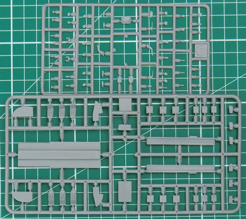 Bausatz: Dieser kann fast nur von Amodel kommen, dem Hersteller für Exoten! Es gibt noch einem weiteren Starship-Kit, jedoch kenn ich die Unterschiede nicht. In dem praktischen Stülpkarton befinden sich gut verpackt acht graue Spritzlinge mit 177 Einzelteilen, ein Rahmen mit 18 Klarsichteilen, ein kleiner Fotoätzteilbogen, ein Decal und die typische Amodel-Bauanleitung. Die Teile sind in der typischen Amodel-Short-Run-Qualität. Es gibt feine Strukturen, klobige Angüsse und keinen Grat.