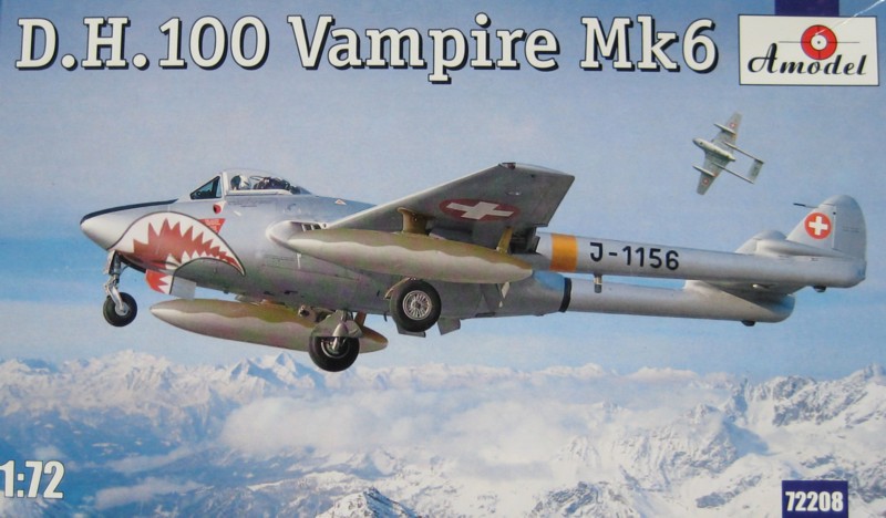 Jetzt hat Amodel die erste 72er Vampire in Spritzguss mit versenkten Gravuren in mehreren Versionen auf den Markt geworfen, darunter auch die einer Schweizer Mk.6.
