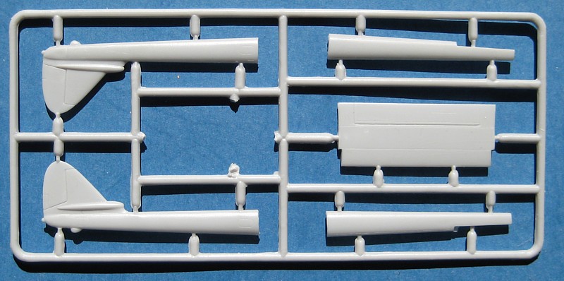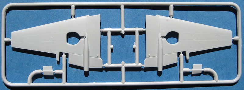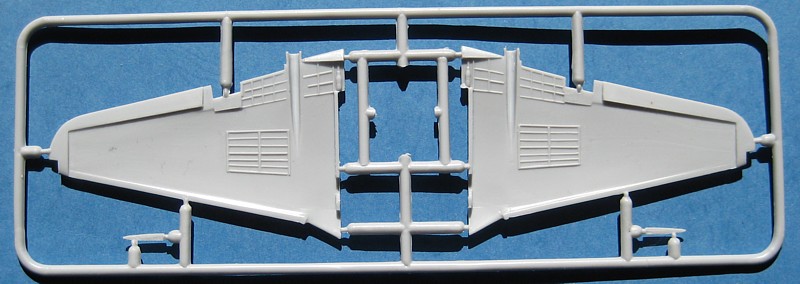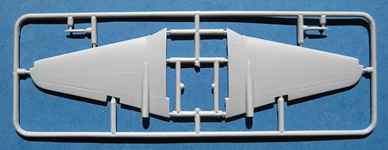 Die Tragfläche zeigt die runden Endbögen der frühen Vampire. Für die clipped Wings der Mk.6 müssen diese Bögen abgeschnitten und durch mitgelieferte Endkappen ersetzt werden. Weiterhin ist die Tragfläche dafür ausgelegt, dass man die Landeklappen ausfahren und die Bremsklappen auslenken kann. Dazu müssen aber die Klappen selbst herausgetrennt werden.