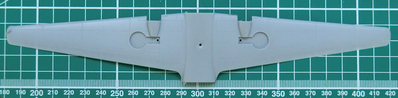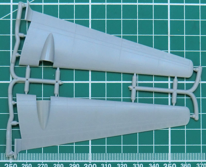 Der Aufbau des restlichen Bausatzes ist klassisch. Es gibt feine versenkte Strukturen. Die Tragläche entsteht aus drei Teilen. Allerdings haben Seiten- und Querruder keine scharfe Hinterkanten. Diese gibt nur beim Höhenruder.