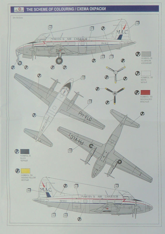 Der Decalbogen ist tadellos gedruckt und die Farbangaben nehmen Bezug aus das Humbrol-System. Leider fehlen weitergehende Informationen zu den Bemalungsvarianten.