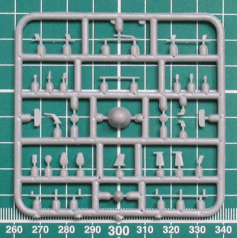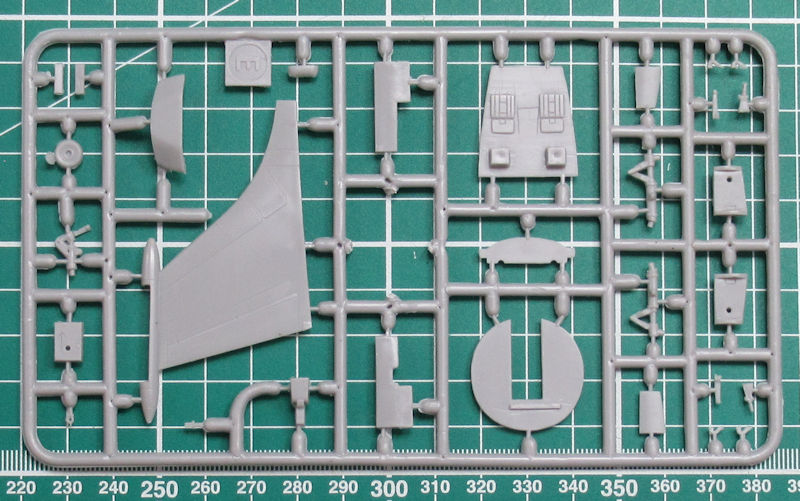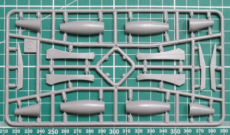 In dem praktischen Stülpkarton befinden sich gut verpackt acht graue Spritzlinge mit 164 Teilen, 16 Klarsichtteile, ein kleiner Fotoätzteilbogen, weiße Masken, ein Decalbogen, die mehrfarbige Bemalungsanleitung und die Bauanleitung. Die Teile haben feine versenkte Strukturen.