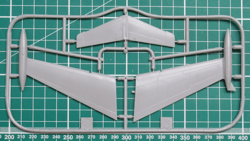 Die beiden Triebwerksgondeln sind etwas einfach gehalten. Hier hätte ich mir vorn und hinten einen einzelnen Ring gewünscht. Dann wäre der Zusammenbau vereinfacht und die Optik hätte gewonnen. Bei der Tragfläche gibt es scharfe Hinterkanten. Gleiches gilt für Seiten- und Höhenruder. Die Fahrwerksschächte sowie die Räder sind recht einfach gehalten.