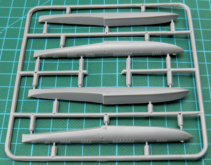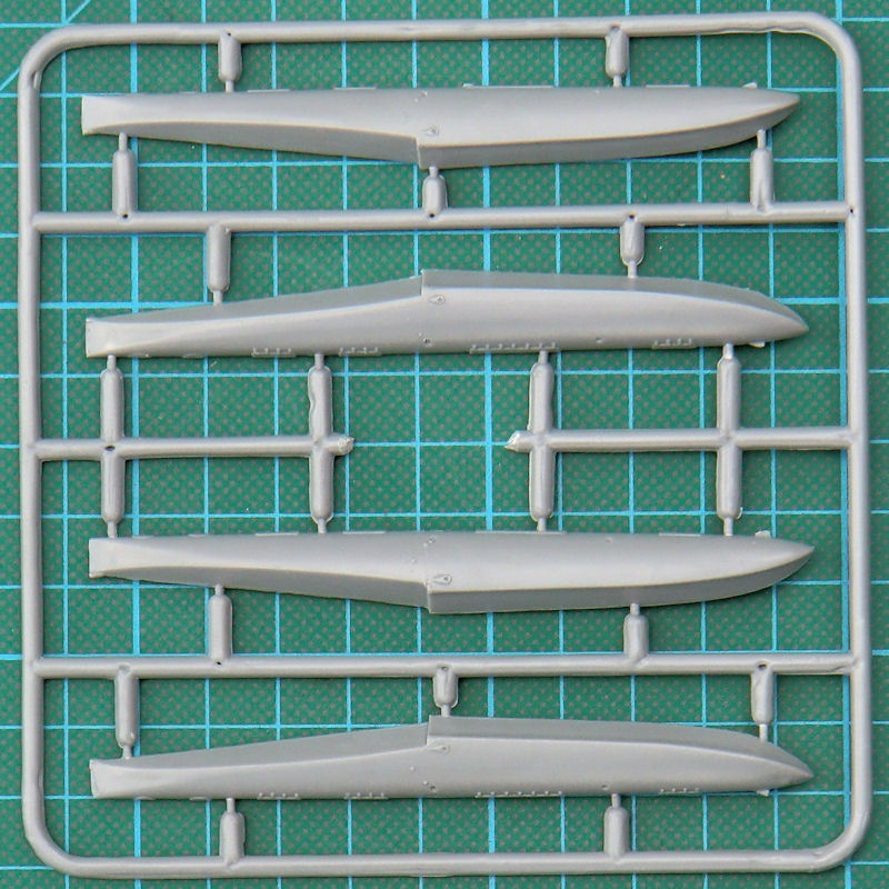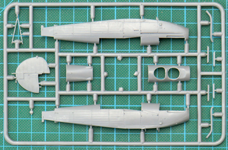 Die Detaillierung und auch die Abspritzung der Bauteile ist sehr gut. Es gibt kaum Sinkstellen und die Auswerfermarkierungen sind auch sinnvoll gesetzt. Positiv fällt ebenso auf, dass die Flächen und Leitwerke aus einem Stück bestehen und dadurch recht scharfkantige Hinterkannten haben.