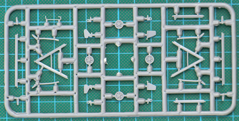 Im attraktiven Stülpkarton befinden sich gut verpackt ein Decalbogen, die Bauanleitung, sechs Spritzlinge mit insgesamt 116 Bauteilen sowie einem Fotofilm als Windschutz. Einige Bauteile wandern in die Restekiste. Die Masse der Teile ist aus dem Bausatz der Landversion bekannt.