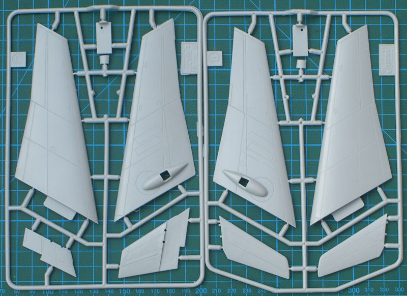 Die Bauteile besitzen feine versenkte Strukturen. Trotzdem haben wir es mit einem Kit zu tun, der im Short-Run-Verfahren hergestellt wurde. Fünf Spritzgussrahmen sind bei beiden Bausätzen identisch. Nur der Spritzling mit den Bauteilen für den Lufteinlauf ist unterschiedlich.
